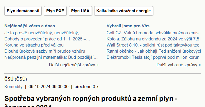 Novinky a vývoj cen komodit, jako jsou ropa, zlato, stříbro, zemědělské produkty apod.