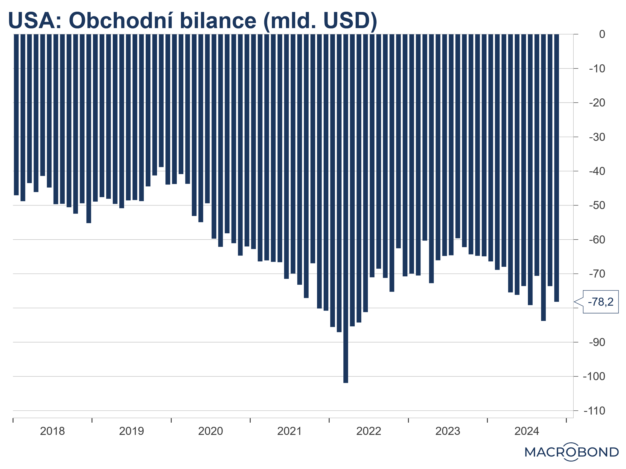 - Obchodní bilance v USA mírně prohloubila schodek