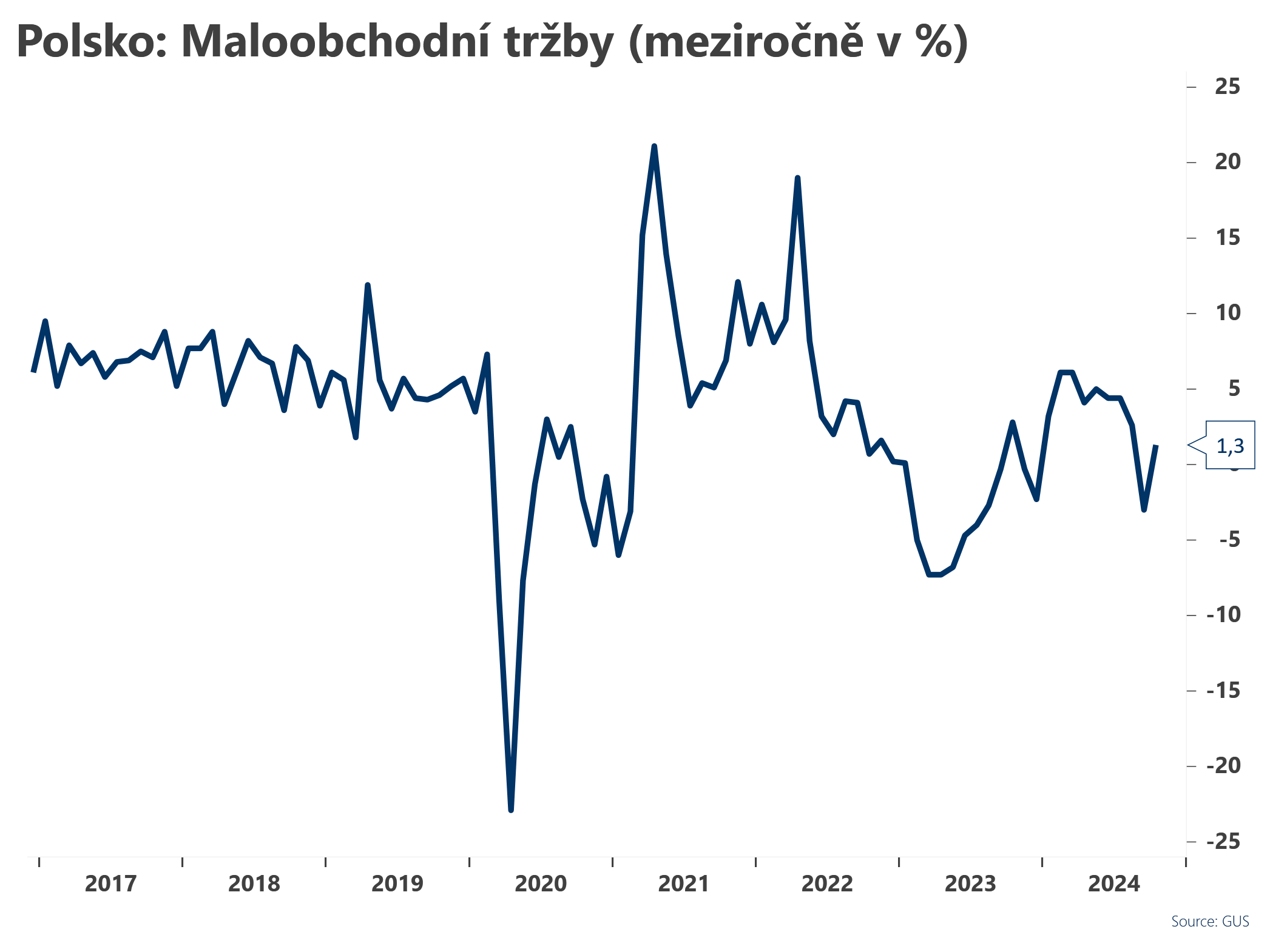 - Tržby v Polsku klesly (21.2.2023). Maloobchodní tržby v lednu klesly o 0,3 % meziročně oproti +0,2 % v prosinci. Trhy naopak očekávaly růst +1 % meziročně.