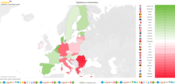 V digitalizaci a infrastruktuře Česko pokulhává. M... by · 2 října, 2024 · no commentČesko se v pilíři digitalizace a infrastruktury meziročně propadlo o 6 příček, ukazuje to analýza Indexu prosperity a finančního zdraví. Přestože se stále může pochlubit nejhustší železniční sítí v EU a patří mezi státy s nejvyššími investicemi do...