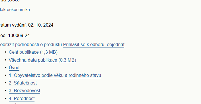 Vývoj obyvatelstva České republiky – 2023 by · 2 října, 2024 · no commentDatum vydání: 02. 10. 2024Kód: 130069-24 Zobrazit podrobnosti o produktu Přihlásit se k odběru, objednat Přihlásit se k odběruPřejete si dostávat informaci o vydání tohoto produktu přímo do své e-mailové schránky? Přihlásit se k odběru Celá...
