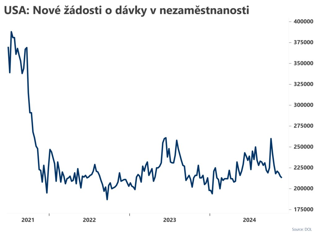 Nové žádosti o dávky v nezaměstnanosti klesly by · 27 listopadu, 2024 · no commentNové žádosti o dávky v nezaměstnanosti v minulém týdnu klesly na 213 tis. oproti revidovaným 215 tis. v předminulém týdnu. Trhy očekávaly 215 tis. nových žádostí.