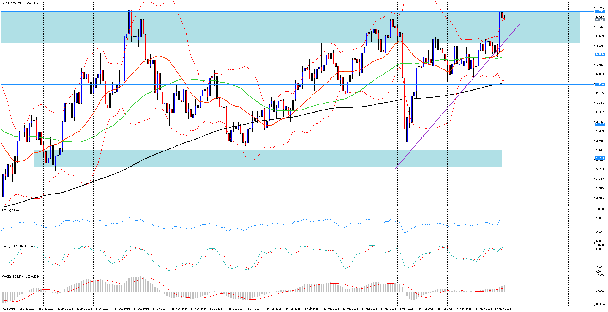 k neutrální úrovni, což ukazuje na medvědí tendenci. Současná cena stříbra se