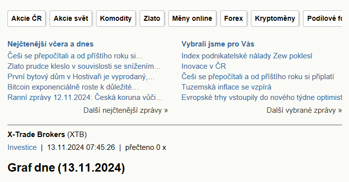 - Nejdůležitější událostí dnešního dne bude zveřejnění zprávy o indexu spotřebitelských cen v USA. Očekávání analytiků naznačují mírný nárůst celkové inflace a žádnou změnu u jádrové inflace na roční bázi.