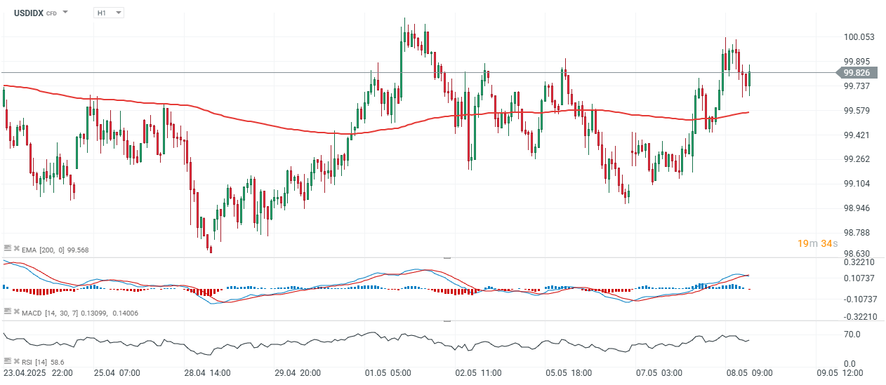 Index amerického dolaru (USDIDX) dnes testuje úroveň 100, což signalizuje tlak na posilování dolaru.